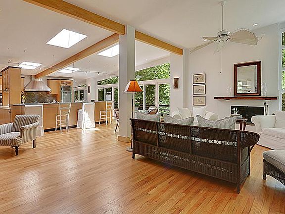 Mountains like setting in Buckhead. Fully renovated home located on one of Buckhead's most exclusive addresses. Hop on your golf cart or walk only 100 yards down Whitewater Creek to the Chattahoochee River and East Palisades Park where you will enjoy over three miles of hiking to scenic overlooks or the bamboo forest, trout fishing, a dog beach, and rafting. This unique home feels as if you're in the North Georgia mountains. The deck overlooks a beautiful curved stone wall next to a stream. The main level features a dramatic open floor plan with high ceilings, skylights, hardwood floors throughout, three fireplaces and massive windows that offer views of the stream and landscaping. The large kitchen with granite counters opens to the family room. The fully finished day-light terrace level offers a fireplace, a kitchen bar, a large bedroom and bathroom, making it perfect for a guest or teenager suite. Minutes to Chastain Park, Vinings, I-75 and the best public and private schools in Atlanta - Westminster, Lovett and Warren T. Jackson and Sutton. 4 Bedrooms/4.5 Baths/4 Fireplaces. Available May 1, 2022 Tenant pays utilities, upkeep of the property. Rented unfurnished.