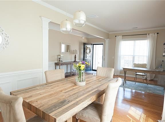 Pristine Aberdeen floorplan located in desirable Belair at Carolina Lakes. This home features hardwood floors on main, granite counters and island in the open kitchen, two story great room with windows from the floor to ceiling, and living room/dining room/office space. Upgrades include custom lighting, backsplash in kitchen, gas stove, wainscoting, crown molding, custom mirrors in bathrooms, ceiling fans, and exterior landscaping. Upstairs boasts three bedrooms including a large master bedroom with a walk in closet. The laundry space is located upstairs for added convenience. The backyard is fenced with a stamped concrete expansive patio, pergola, and fire pit for entertaining.