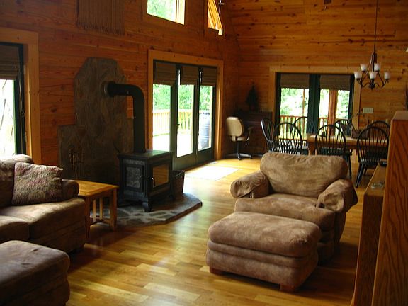 Beautiful custom built log home on 36+ acres near Claytor Lake and New River Trail. Canoeing, kayaking, motor boating, hiking, biking, horse back riding.2000sq ft living space, 1300sq ft garage, basement. Custom built kitchen and bathroom cabinets. Open floor plan. All white oak floors. Italian handmade tile on kitchen floors and counter tops. French doors, casement windows. All stainless steel appliances. Washer/dryer on main level. Hearthstone wood stove. 2 heat pumps. Complete home water conditioning system. 12 inch poured concrete basement walls.1200 sq ft wrap around deck, 400 sq ft upper deck. Lg screened porch. Fenced yard for pets. Partial fencing plus three 16 ft gates on 5 acres open level land. Garden space/beds with deer fencing. Walking trails on land with access to mountian bike, dirt bike, four wheeler, or jeep trails adjoining property.