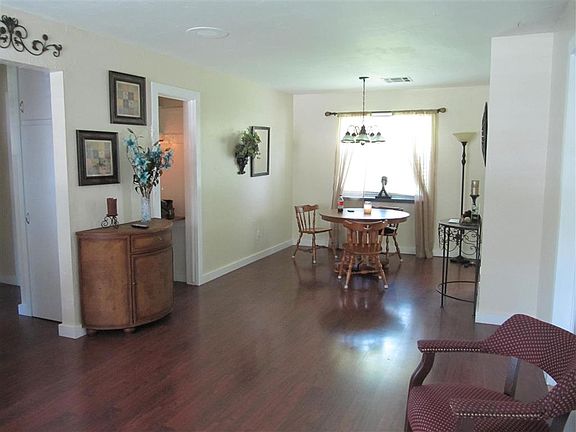 Cute 2 bedroom home with attached garage. Laminate wood floors in living, kitchen, hall and bedrooms. Fridge with chalkboard paint front, washer and dryer to stay with home. Roof updated in 2015. Living/dining area has free standing gas furnace to use if electricity ever goes out. Newer dishwasher, garbage disposal and garage door opener in home. Closet in dining area set up to be a computer area.