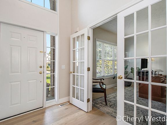 Located in the highly sought-after Vineyards neighborhood, you'll be able to move right into this stunning 5 bedroom, 3 1/2 bath home that has been meticulously maintained & professionally updated throughout. The main floor features a welcoming sunny entry, private office w/French doors, dining room, open concept living space w/newer gas fireplace flanked by spacious built-ins, eating area, gorgeous new kitchen w/new cabinets, large island w/microwave drawer, tile backsplash & quartz counters. A pretty guest bath & laundry room round out the main floor. New paint & White Oak hardwood floor on the main floor give a contemporary vibe. Upstairs you'll find 3 good-sized bedrooms & a sizable primary suite that will house your bedroom furniture with room to spare. The spa-like bath off the primary bedroom has a beautiful tile shower, separate soaking tub & double vanity w/new quartz counter. The second bath has been fully renovated with new tile, vanity, quartz counter, more. The walkout level expands the living space with a family room, 5th bedroom, full bath and plenty of storage. Outside enjoy the spacious deck off the eating area that steps down to the backyard, and the large patio off the family room. Be sure to check out the additional storage area that really expands the usefulness of the garage. High quality new roof in 2022 with 50-year transferrable warranty for peace of mind. Google Nest Doorbell, thermostat and smoke alarms are included. The small annual association fee includes trash pickup and sidewalk snow removal. You'll love the convenient location of the neighborhood, close to restaurants, schools (there's a private path to Collins Elementary), bike paths, and more. Enjoy MVP Sports Club with their outdoor pool & new pickleball facility among other things, just a mile away. Convenient to downtown Grand Rapids and Ada, the airport, Forest Hills Foods. This is a home you'll want to experience in person to appreciate all that it offers!