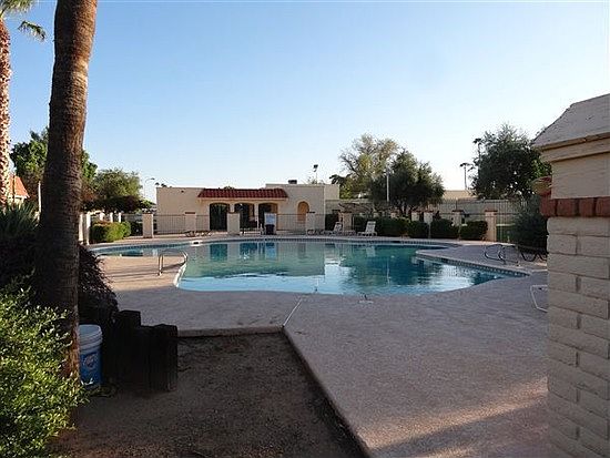 A truly must see recently renovated spacious 3b 2bs, split floor. New tile in living room, carpet bedrooms. Huge Covered Patio, washer and dryer, new appliances, right behind Fry's shopping center,1 min from Grand Ave in very well maintained and managed community with round the clock security. quiet, with extra storage, 3 parking, 2 covered, nice front porch long term tenant in place, below market month to month rent at 850, almost zero maintenance needed since tenant is handy Man Be the first to get this one!