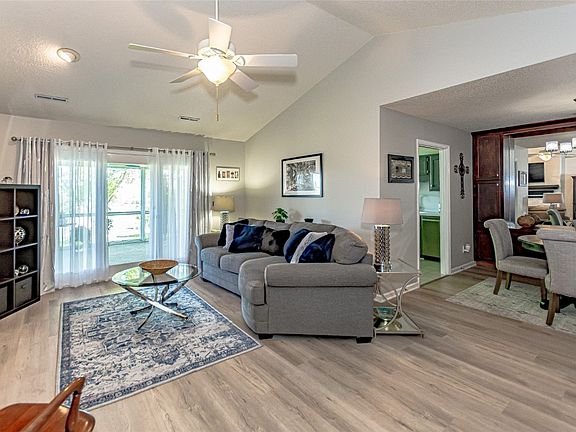 This is a beautiful spacious condo with many updates and is move in ready. This 2nd floor condo with 1550 sq ft, 2 bedroom, 2 bath, a den, screeded-in porch and a 2 car garage. It has a great location and many updated. It features include a fire place that can be seen from the living room and den all new luxury vinyl flooring with a vaulted ceiling. The updated kitchen has new Corian counter tops and black splash all stainless steal appliances. The master suite has a walk-in closes and is very spaces. There is a $500. start up fee and no pets