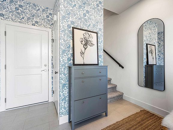 Welcome to this beautiful 3-storey end unit, row home, NO STRATA Fee, featuring 3 bedrms, a spacious den, & 3 bathrms. Located in a family-friendly neighbourhood, just steps from the river, trails & parks. This home is also close to all levels of schools & just minutes away from the amenities of Garrison Crossing. The open-concept main floor boasts 10-foot ceilings, creating a bright & airy main living space. The living room features a cozy electric fireplace & access to the back patio! The modern kitchen has a lrg island, s/s appliances & access out to the 2nd patio & adjoining dining area. Upstairs, the primary suite has a generous size walk in closet & 3pc ensuite! 2 additional bedrms & a full bath complete the upper level! This home also has the convenience of a lrg double car garage!