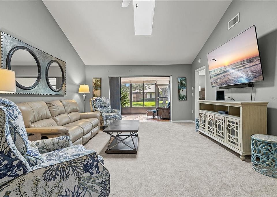 PRICED TO SELL - CLOSING CREDIT AVAILABLE & NEW CARPET INSTALLED - This 3-bedroom, 2-bath villa in Center Gate Estates (55+) lives like a single-family home while giving you the ease of maintenance-free living. Perfectly located just minutes from I-75, top medical facilities, Sarasota’s UTC dining and shopping hub, and our world-famous Gulf beaches, this home is designed for easy living with all the perks of a prime Sarasota location. Step inside to discover brand-new carpet in the living space and primary bedroom, adding a fresh, inviting feel to the already light-filled interior. The smart split-bedroom floor plan offers privacy for the primary suite while leaving plenty of room for guests, hobbies, or even a home office (as displayed). Vaulted ceilings and skylights make the main living areas bright and spacious, while the Florida room frames tranquil pond views and the community pool—your go-to spot for morning coffee or evening relaxation. This villa comes with extensive updates which were completed between 2020–2024: ROOF (2023), A/C (2024), Electrical Panel (2024), Kitchen Appliances (2023), Fresh Paint, Washer/Dryer, Guest Bedroom Flooring, New Driveway, Epoxy Garage Flooring, Fenced Lanai, and more. Both the primary and 2nd guest bedroom open to an oversized screened lanai, now enhanced with a brand-new concrete pad and privacy fence—ideal for entertaining in the afternoon. Practical extras include a utility/mudroom, a two-car garage with a mini-split A/C unit (perfect for a workshop or cooled storage), and even an electric vehicle charging outlet. And here’s the bonus: Sellers are offering a $7,500 credit at closing—giving buyers more flexibility to make this villa truly theirs. Turnkey, upgraded, and ready for its next homeowner—schedule your private showing today!