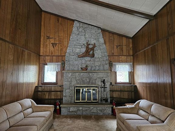 Now hooked to municipal water with no special assessment levied. RETRO RIVER (Creek) RETREAT... take a step back in time with this 1960s 3 bedroom, 2 bath, over 2400 sqft home with 173 +/- feet frontage on VanEtten Creek. Cast a line from the bank or take your boat just a short trip to the mighty AuSable River, or just relax in the 4-Seasons room overlooking the Creek. The Great Room offers Cathedral ceilings and a fieldstone fireplace ready for a crackling fire whenever the mood strikes you! At the opposite end of the Great room is a formal dining area, with the open area providing amazing potential for entertaining friends and family. Don't forget the large space on the driveway side of the home perfect for a Rec room, complete with the hot tub that stays! The roof was replaced (shingles) in the month of May, 2025. Main bedroom on the first floor. Two additional bedrooms in the loft area with a 3/4 bath to be shared.