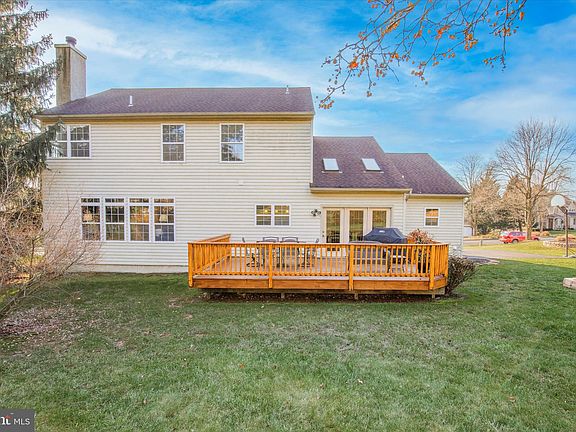 Price improvement! Beautiful Grand Manor Brick Colonial on a large corner lot of .62 acres in the sought-after neighborhood of Durham Ridge in Central Bucks School District. As you enter you will notice the entire interior has been freshly painted with a lovely neutral color. On your right through the beautiful French doors, you'll enter the large office with numerous windows that provide amazing natural light. The lovely dining room with a new lighting fixture on your left from the foyer is the perfect space for those holiday gatherings. Making your way along the hardwood flooring that is throughout the first floor you arrive in the kitchen. The massive kitchen with breakfast room features vaulted ceilings, skylights, granite countertops, 42-inch cabinets, a center island, a newer dishwasher and newer refrigerator, and a large pantry. The mud room/laundry with a newer washer and dryer off the two-car garage gives easy access to the kitchen. Completing the first floor is the family room adorned with built-ins for that personal decorating touch, an alcove for a desk, or a reading nook. The wood-burning fireplace makes it extra cozy. Upstairs the spacious primary bedroom suite has a bonus area for curling up with a good book, a walk-in closet, and a luxurious private bath with custom tile on the large soaking tub and separate shower. The three additional bedrooms and hall bath complete the upstairs. You would think that was enough but oh no! There is a vast unfinished storage space in the basement as well as a sizable finished space perfect for game day or a playroom. Take Note : ***New Energy Efficient HVAC, ***Newer Roof, ***Newer Water Heater, **Fresh Neutral Paint, **Freshly Stained Deck, **Newer Garage Doors, **New Driveway