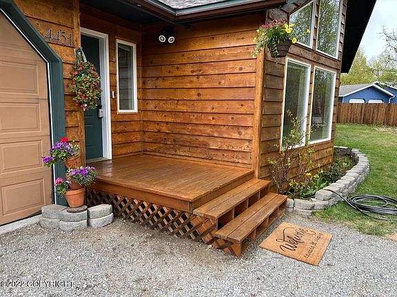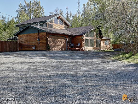 New roof just completed! Step in to this open yet cozy home with large windows letting in lots of light, two living spaces, two master suites and a recently remodeled kitchen! The kitchen is centrally located making this home perfect for entertaining. This amazing home is situated on a fully landscaped corner lot, abundant with apple trees, mature lawn, rock features and...wildlife! The main floor holds one master suite, two additional bedrooms and a bathroom, two large livings room, kitchen, dining and laundry. The second floor holds the second master suite with more large windows to take in the mountain views, large walk in closet and a jetted tub in the master bath for melting away long days. The back yard is complete with a fire pit to soak in the long summer days, apple trees that produce bushels of apples every year and moose that frequent the property. You're going to love this home and it's many updates done over the past few years to include new flooring throughout, full kitchen remodel, all bathrooms remodeled and fresh paint, AND cedar siding just refreshed! Located just minutes from the conveniences of Wasilla and 45 minutes from Anchorage.