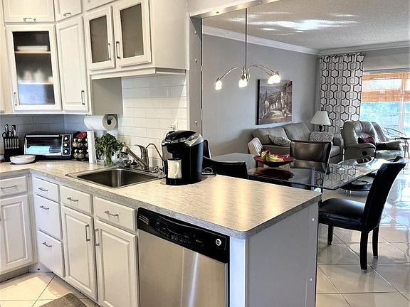 Nicely updated furnished 2/2 with stainless steel appliances, tile thorough out and newer AC and water heater. Very spacious with a lot of closet space with additional freezer and small fridge. Well maintained community with 2 pools, clubhouse, shuffleboard and exercise room activities and more. Close to shopping and transportation.