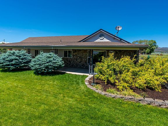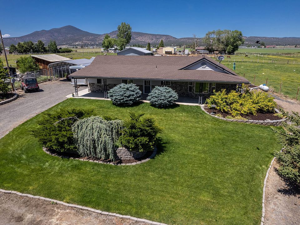 Wonderful custom ranch style home on 2 irrigated acres in peaceful setting! Beautiful covered front entry, great room floorplan with vaulted ceilings, recessed lighting, corner gas fireplace w/elegant stone hearth. Lots of windows to keep it light & airy. Open kitchen boasts hickory cabinets, tile floors, island/breakfast bar w/cooktop, and ss appliances including double ovens! Breakfast nook w/slider door to covered back patio. Large primary bed & bath w/double vanities, walk-in shower, linen closet, and sliding door to back patio. Spacious laundry room w/utility sink & tons of storage. Property features 2 car garage w/storage room, large separate shop w/concrete floors & roll up door,, hay storage, animal shelter, chicken coop & 2 RV covers. Fenced pastures w/K-line style irrigation w/new nozzles. A/C, heat pump, gutters. Landscaped w/auto sprinklers & water feature. Roses, berries, poppies & more! 10 min. drive to Prineville, Gray & Grizzly buttes & reservoirs nearby.