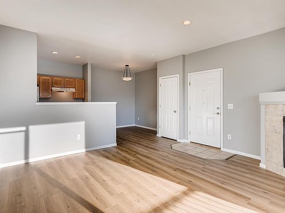 Unobstructed mountain views. All new flooring and fresh paint makes this move in ready. Washer/dryer in unit. Great west facing location near Wadsworth and Quincy. Spacious master suite with a 4 piece bathroom en suite and a large walk in closet. Second bedroom also has mountain views and a full bathroom. Living room with fireplace, balcony and storage. Kitchen and dining area overlook living room with views. 2 parking spots included. Owner pays HOA which includes trash, recycling and water. Tenant pays for Xcel gas/electric bill.