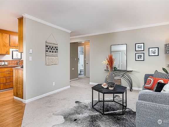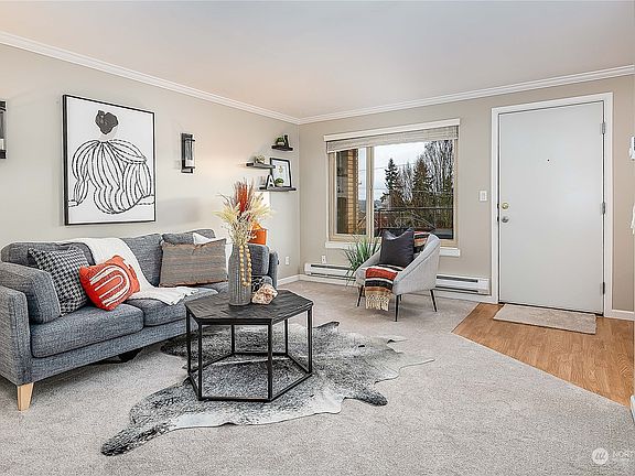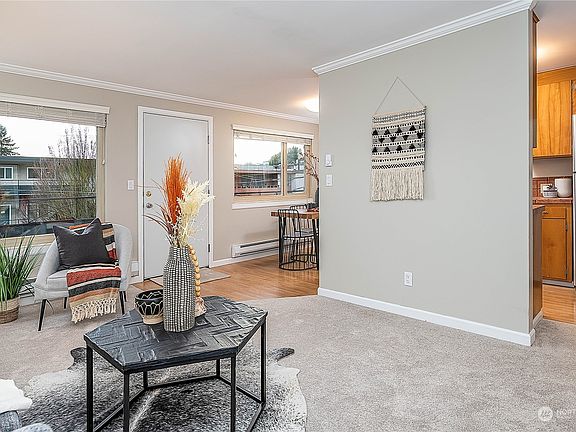 Don't miss this appealing top-floor condo in 1961 boutique building.  Sparkling with updates yet retains it's 60s charm with abundant natural light and views from living room and dining area.  The refreshed interior includes new living room carpet, new induction range, updated bathroom with tile floor, refinished cast-iron tub, vanity and fixtures.  Bedroom features a ceiling fan and original hardwood floors.  Good storage in unit with hall closets and large bedroom closet.  There is also a storage locker off of basement level laundry room and an off street parking space.  Fantastic location convenient to Wallingford shops and restaurants, Green Lake, Woodland Park, close to Metro stop.  Pre-inspected. Is it your time to become a homeowner?