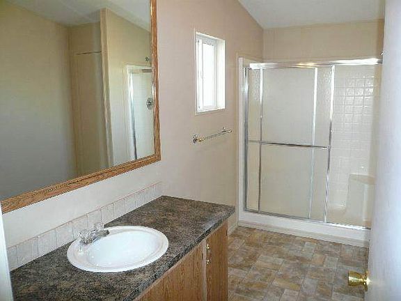 Great opportunity for suburban living! This MFH has been totally redone w/new carpets, vinyls, counters, sink, diswasher & range and refigerator included. Totally painted and ready to move in! Valulted ceilings for spaciousness. Master on opposite side from bedrooms and has a den off living room. Could be office or additional bedroom. On quiet street, near very expensive homes and has a 2.43 acre lot. Animals allowed too!