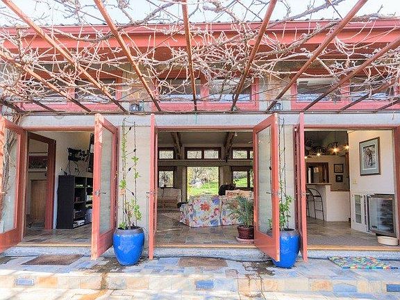 This riverfront home sits on 25 wooded acres. Intrigue is peaked as one drives down this stately driveway towards this custom 3,000 sq. ft. rammed earth home. The home is off grid with state of the art solar to power the entire grounds. Upon entering the home one exclaims wow as they view the open concept kitchen/living space, high ceilings, massive beams and floor to ceiling glass doors. The kitchen boasts high end appliances, wine refrigerator, two sinks and walk-in pantry. Swing the living room doors open and expand the living space as you walk out onto the huge patio that overlooks the riverfront acreage and spa deck. The master bedroom is downstairs and the en-suite master bathroom is custom, custom, custom!Upstairs there is a huge office space, 2 more bedrooms and bathroom. All rooms have amazing views. The yard is a bit of heaven with natural landscaping, garden area, walking paths, oak forest and incredible views. First time on the market this home is a lifestyle opportunit