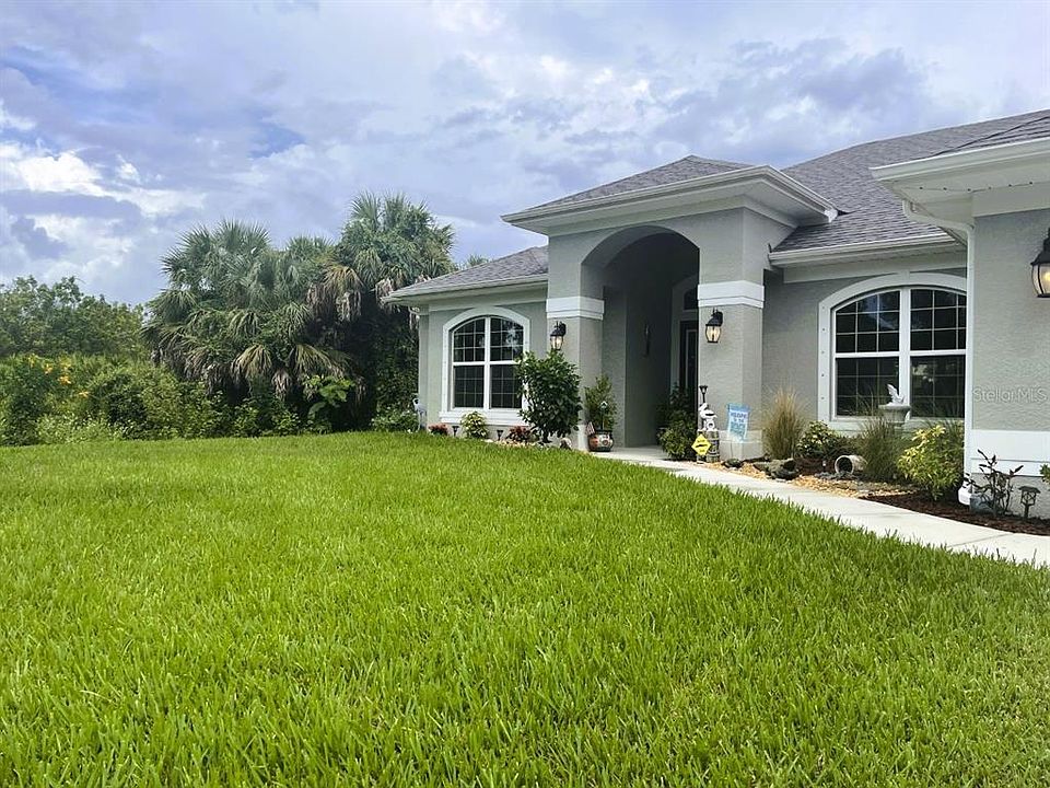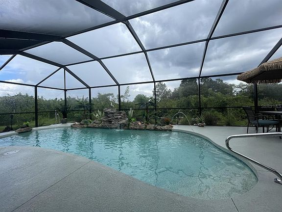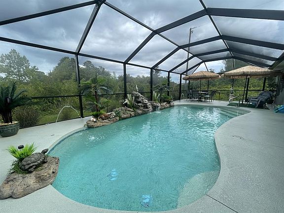 Move In Ready, Partially Furnished! A beautiful beach retreat best describes this almost new professional landscaped four-bedroom, two-bathroom, oversized two car epoxied floor garage POOL home with irrigation, that is NOT IN A FLOOD ZONE, on COUNTY WATER, and has a transferable whole home warranty, nestled in the beautiful community of Gulf Cove, with an optional HOA. Upon entering, you are welcomed by a highly desirable, open concept floor plan with porcelain plank tile floorings throughout. Entertain guests in your high end, chef like kitchen, complete with pristine soft close cabinetry, granite countertops, breakfast bar, and stainless-steel appliances. Spend time with family and friends while sharing a meal in the adjoining dining room, dinette, or living room. This living room is the heart and soul of the home, with light from the double paned three panel pocket sliders that flows out to the pool area. The spacious master retreat features double walk-in closets as well as a generous en-suite bath, with split sinks, floor to ceiling tiled walk-in shower, linen closet, and private water closet. The additional bedrooms are situated on the other side of the home within close proximity to a full bath with access to the No- See-Um screened extended pool deck. Soak up some rays and cool off in the BRAND-NEW Pebble Tech Lifetime Warranty SALTWATER pool with a custom waterfall and deck jets. Need a space to work, or a quiet place to relax, there is an office, den or hobby room too! Stay active with golf, boating and beaches just minutes from your new house. Don't miss out on this stunning home in paradise! Call for a showing today! Professional pictures are to be added soon!