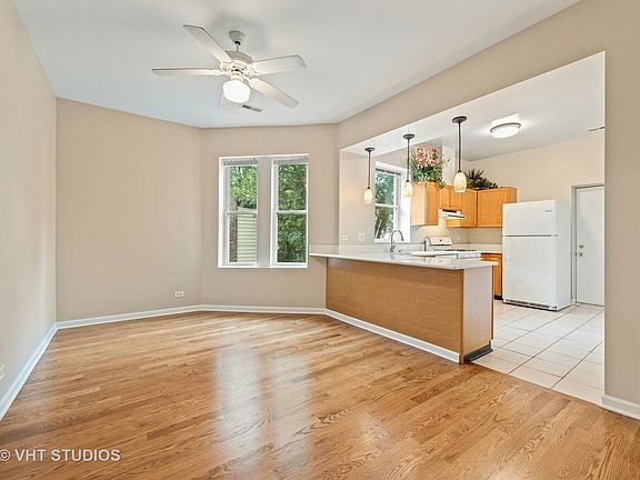 This sun drenched second floor condo located right on the border of Albany Park and Ravenswood Manor boasts 9ft ceilings and brand new hardwood floors throughout! 2 bedrooms, 1 bath with an eat-in kitchen that opens up into a bright and spacious dining room, separate family room, gleaming sunroom, spacious rear deck, side by side in-unit laundry, and one exterior parking spot! A new water heater, newer furnace, and fresh paint leave little work to be done in this lovely turnkey home. Just a few blocks from the Francisco brown line and ample street parking. Steps away from all the action of Manor Park / Horner Park. FHA Approved.