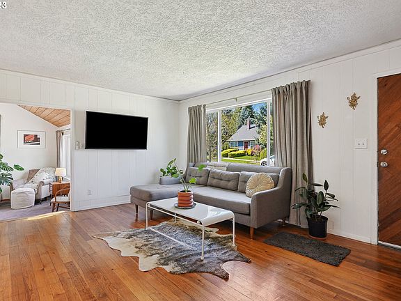 Looking for a charming home with character and modern amenities? This 1940s' home has had all the major updates and energy improvements! The open floor plan boasts a warm and inviting atmosphere filled with natural light, showcasing the beautiful hardwood floors. Functional kitchen includes stylish design details, plenty of storage and counter space, and a beautiful view of the east-facing backyard. The additional cozy sunken living room makes for a great flex space along with pellet stove and access to a covered patio for year-round outdoor living. 2 beds and bath on main, with primary upstairs bedroom. Incredibly rare 4 car extra deep garage provides a ton of flexibility and options for ADU potential, shop, storage for cars/toys/hobbies etc! The backyard oasis has been meticulously landscaped and comes with lots of established plants, flowers, and hummingbirds making it the perfect place to relax or entertain. Close to schools, shopping, parks and restaurants. New electrical panel (2018) Installed mini-split HVAC system (2018) Weatherized & added insulation to attic (2019) New water heater (2019) New PEX plumbing throughout (2021) Total backyard renovation (2021) [Home Energy Score = 7. HES Report at https://rpt.greenbuildingregistry.com/hes/OR10082809]