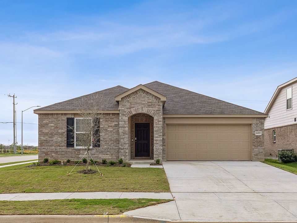 NEW CONSTRUCTION - NEWBERRY POINT, a beautiful community in Fort Worth. One story Killeen plan - Elevation D. Available for May - June 2024 move-in. 3BR, 2BA + Study + Tray ceiling in gathering room + Smart Home package + Corner homesite + Faux wood blinds - 1,988 sq.ft. Open concept floor plan with private owner's retreat and two secondary bedrooms.