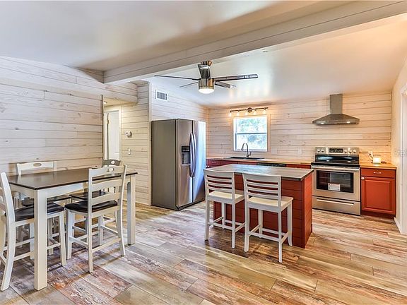SALT WATER BREEZES, SUNSHINE & DOLPHINS... This Hernando Beach Waterfront Retreat is remodeled for the BEACHY LOOK. Price Improved.. Hurry, Also The Best Priced Direct Access Home! Inside you will find a New Kitchen with Ship Lap Walls, Wood Laminate Plank Floors, Island w/Wood Block Counter, Stainless Steel Appliances including a Chimney Hood, New Nautical Lights & Fixtures & a 'Pop' of Color Cabinetry + Beamed Vaulted Ceiling. Living Space Inside & Out is situated to over look the Waterfront Lifestyle... DOLPHINS Visit often. 1104 sf of Living Inside & 751 Enclosed Back Porch with Windows & Screens. It will be the place you spend most of your time... A place to RELAX or ENTERTAIN. Master Bedroom has a Plank Wall too.. Pretty Walk In Shower with Natural Stone.. Glass Sink. Bedroom 2 offers a Picture Window looking out to the Florida Room. BOATERS.. Location is key - Very Few Homes are in the Affordable AE Flood Zone for Insurance like this home & Yet has Quick EZ Direct Access to the Gulf (canal right off main channel). Hernando Beach is a Quaint Place.. Marinas, Parks, Trails, Lakes, Locally Owned Restaurants, Gift Shops.. Come Enjoy the Nature Coast. Contact Us for a Virtual Tour or Showing and do not forget to ask to see the Dolphin Videos behind this home.