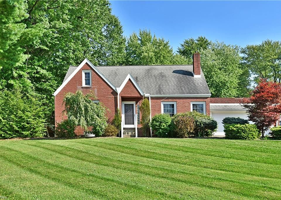 Boasting a ton of character and a unique location, this all-brick Canfield home packs huge potential with its three-bedroom, two story layout. A hand laid rock creek bed runs along the manicured yard, creating a storybook setting that leads past backyard gardens and a hidden barn. Step inside to find rooms filled with hardwood flooring and large, lattice windows that flood the living space with natural light. A like styled staircase leads upstairs where two loft bedrooms surround built-in cabinets. At the far bedroom, a rooftop walkout makes for an above the garage patio like no other. Back on the first floor, a spacious living room presides across from a potential family or formal dining area. The rearward kitchen offers up a galley layout with stainless appliances and provisions for eat-in dining set before access to the expansive side deck. A first-floor bedroom and full back complete the floor. Below, the full basement includes laundry and additional full lower bath.