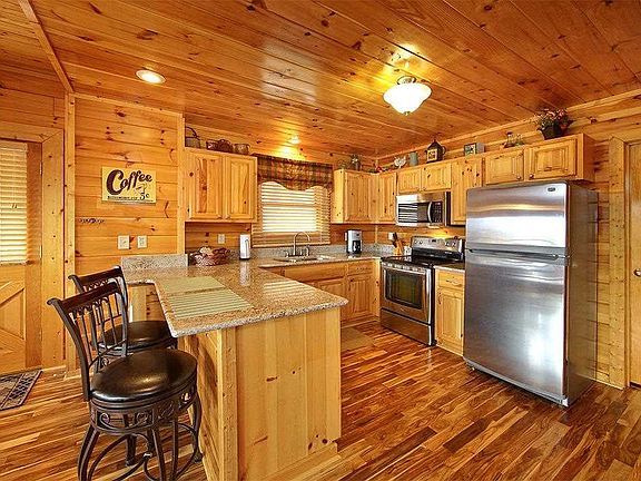 Extremely nice 4 bedroom, 3 bath cabin in Sherwood Forest Resort! Located in the Pigeon Forge area, you are only minutes to most all big area attractions. Features include an all wood interior, cathedral ceilings, exposed beams, hardwood floors, and 2 gas log fireplaces. Comes fully furnished and decorated, and the kitchen is fully equipped. There are 6 flat screen TVs including a 65" above the fireplace. All the bathrooms and the kitchen have high-end African Ivory granite countertops! The master bathroom has a custom shower with Italian tile, slate, and 2 shower heads. There is imported Italian tile in all the bathrooms. Already setup great for overnight rental or a 2nd home. Currently setup to sleep 16 people. In 2014, this property grossed over $62,000!