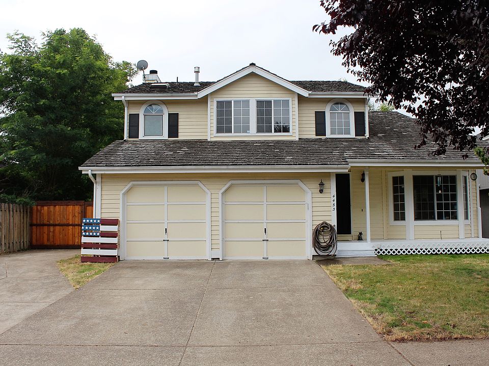 Fresh on the market and ready for you to call home! This 4 bedroom, 2-1/2 bathroom home with 1,793 sqft has a great layout offering separation throughout. You are welcomed by open staircase overlooking the large living and dining area. Right off the kitchen you will find a cozy wood burning fireplace and half bathroom. Converted garage with wet-bar. Fenced in back yard with tool-shed and raised garden beds. On the big patio there are hook ups for adding a hot tub. Great location and park nearby.