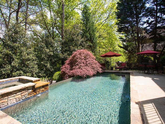 Incredible opportunity just steps from Chastain Park! Beautifully situated on over a half acre lot featuring a gorgeous, resort style infinity pool surrounded by lush, mature landscaping, this beautiful home boasts three full finished floors, soaring ceiling, walls of windows and large living spaces to create both a phenomenal space for entertaining as well as everyday living! Through the front door, you are greeted with natural light from a wall of windows on the back of the home, the sizable dining room to the left of the foyers would be perfect for family gatherings and holiday feasts! Chefs kitchen opens to eat in breakfast nook, family room as well as the living room with 20'+ ceilings. Owner's suite on the main with 4 additional bedrooms and a play room up and the lower, terrace level hosts the 6th bedroom, full bath, game room, media room, wet bar as well as walk-out access to cover pool patio and the private pool area - beyond the pool deck, you'll find a landing with fire pit, waterfall and steps down to large flat grassy area - Also featuring 3 garage spaces, a walk up attic with ample storage and an opportunity for future expansion and an ideal location in Chastain with close proximity to green spaces, shopping and wonderful restaurants.