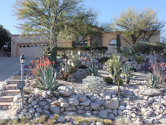 This very well maintained home, located on a private loop drive with a single entrance and exit, is in move-in condition. The Saltillo tile flooring has just been refinished and is beautiful. The vaulted great room, kitchen and dining area are well lit with natural light and have beautiful mountain views. The back patio and garden is finished in flagstone enclosed by a masonry wall and has a spectacular 180 degree unobstructed view of the Catalina mountains from Mount Kimball to Thimble peak. The lot is beautifully landscaped with an extensive array of desert plants and cacti. Exterior painted in 2011 and roof recoated and cracked tiles replaced 2015. $40,000 - $45,000 in upgrades and remodeling since 2005. Contact the seller by phone at 715-579-5728 for a viewing appointment or by completing the brief information on the right side of this page and clicking the "contact" button. Owner will cooperate with brokers representing potential buyers or will consider defraying the costs of a real estate attorney to assist buyers without broker representation.