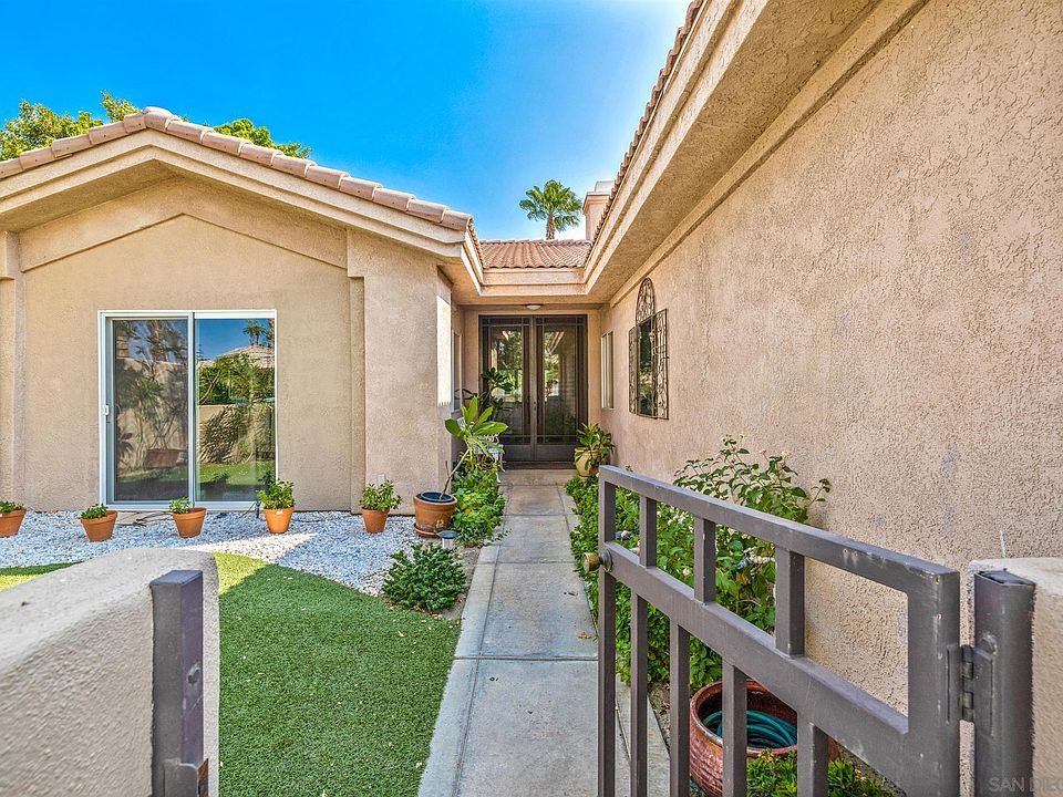 Location, location!Welcome to a well maintained 3 bedroom 3 bath condo. Private gated community in prestigious Indian Wells.This unit is at the end of street and has a beautiful greenbelt for a front yard with a pool across the street and tennis courts on the back. Custom built kitchen ,closet and bathroom cabinets and granite counter top. Travertine tile flooring in main living areas. Separate laundry room & attached 2-car garage.The Dorado Villas community offers 9 pools,9 lighted tennis courts.This is wonderful opportunity for primary residence or investment property.
