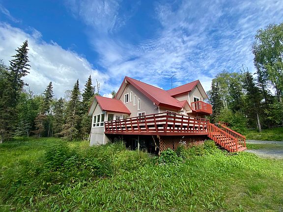 Spacious family home located between Kenai and Soldotna with lots of privacy nestled on a 1.72 acres.Open concept throughout main level with many windows, huge kitchen, vaulted ceilings, along with a sun room/dining room. Sliding glass doors open from dining room and go out to a large wrap around porch great for entertaining family and friends.