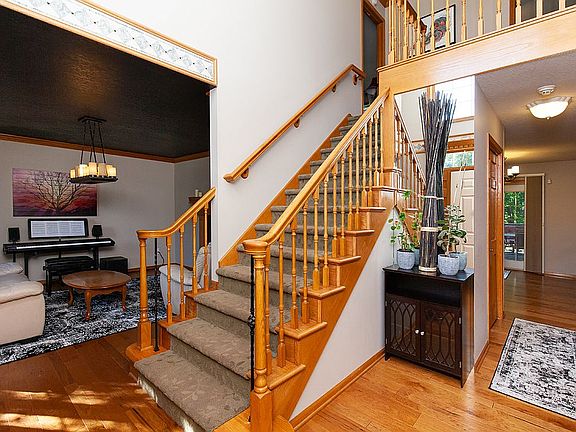 Welcome Home! Beautiful 2 story home with open foyer, spacious formal living area with two sided fireplace and formal dining area. Family and friends will gather in the extra large family room and kitchen with granite countertops. Steps away is the multi-level deck where you'll enjoy spending time outdoors. Second level boasts three good sized bedrooms, full bath and master with ensuite, where you'll enjoy soaking in the clawfoot tub, walk in shower and his and hers walk in closets. Finished walk out basement with living areas, full bath, laundry and storage. Outside the sliding glass doors is the extra large patio. Access to miles of walking/bike paths and parks. Some added features include 2x6 construction, central vac, hardwood floors, security system, radon mitigation system and irrigation system. Come see this home today! All information obtained from Seller and public records.