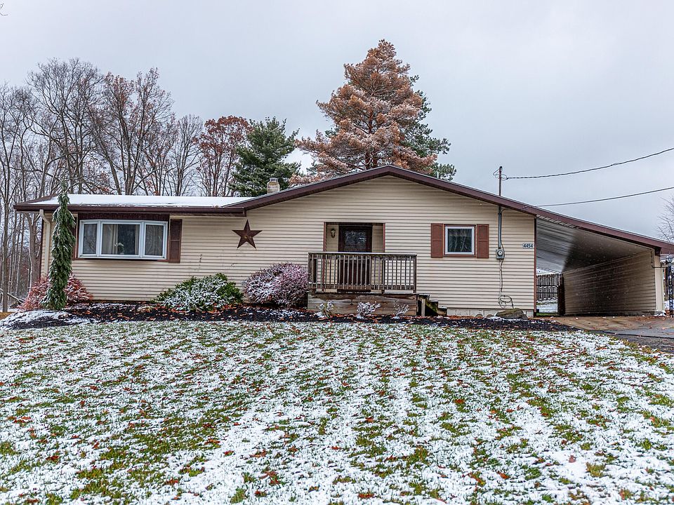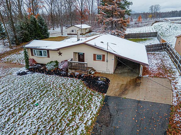 Charming 3 bedroom Ranch situated on 1.4 Acres in Ontario Schools. Spacious Living room & Dining Area. Amazing step down family room with wet bar and French doors to patio. Remodeled bath. The large basement has so much potential for anything you can imagine, from, weight room, craft rooms, or an indoor workshop. There is also a 12x19 Rec Room with walkout French doors. There is a sump with battery backup and a woodburning furnace as an alternative heat source. And last but not least is a great 20x40 pole barn for all your storage needs.