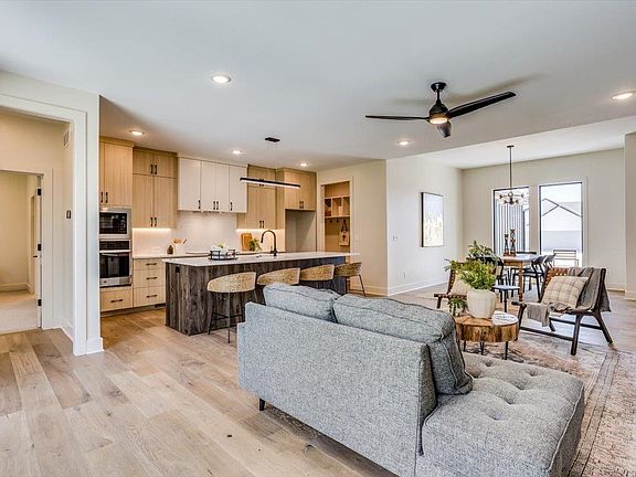 The “Autumn” is a beautifully designed 5 bedroom, 3 bath split plan with a modern flair. The open layout has the stairs to basement tucked behind the living room fireplace. The kitchen island overlooks the living, has pantry behind, and is just off family garage entry perfect for bringing in groceries. Dining area is at the front of the house. Lots of storage in the mudroom that connects to the separate laundry room. The primary suite has a private vestibule entry complete with a small office/desk space. The ensuite bath that has double vanities, private water closet, full tile shower, and huge walk in closet with custom built drawers and shelves.The basement is fully finished with an extra large family/rec room, wet bar, and 2 bedrooms and bath. There is also unfinished storage room for convenience. You’ll appreciate the upgraded HVAC and insulation to help on energy costs in this home. The garage has insulated doors in front, and is oversized with 25’ deep bay 1 and 2, and 30’ deep on bay 3 that also has a 10’ door height with additional overhead door at rear. General taxes shown on vacant lot only. Information deemed reliable but not guaranteed and may change without notice. Room sizes estimated. Specials may not be entirely spread yet on this lot There is a $250 mailbox fee collected atclosing.