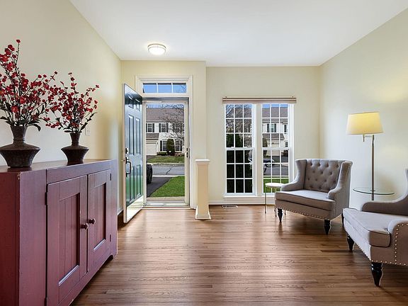 Welcome to 4454 Honeysuckle Lane, nestled in the highly sought-after Summer Meadow community of Plumstead Township. Upon entering this beautifully maintained 3-bedroom, 2.1-bathroom townhome, you're greeted by an open floor plan with 9' ceilings and newly refinished hardwood floors. A bright sitting area flows into the dining area, an ideal space for sophisticated meals & entertaining guests. The tastefully appointed kitchen features sleek granite countertops, stainless steel appliances, a pantry, and plenty of white cabinetry for all your storage needs. A cozy breakfast nook offers uninterrupted views of the expansive Trex deck, perfect for enjoying al fresco dining. The spacious great room invites natural light, providing a relaxing space for lounging. A convenient powder room and access to the one-car garage complete the main level. Upstairs, you'll find two generously sized bedrooms that share a full bathroom with a tub shower. The primary suite is a true sanctuary, offering a large walk-in closet plus an additional custom wall closet (both crafted by Closets by Design), and a luxurious remodeled en-suite bathroom with a soaking tub, double vanities, and an enclosed glass shower. The second level also features a convenient laundry room with additional storage space and a utility sink. The partially finished lower level offers endless possibilities, a perfect space for a home office, playroom, gym, craft room, or more. The unfinished area provides ample storage. With thoughtful upgrades, an open floor plan, and modern conveniences, this home has everything you're looking for. Located in the highly regarded Central Bucks School District. Don't miss out on this incredible opportunity, schedule your private showing today!