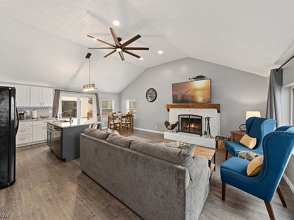 Discover the charm of lakeside living in this meticulously remodeled 2-bedroom, 2-bath home in Geneva, Ohio, just steps away from the serene waters of Lake Erie. Situated a mere 3 miles from the beach, this property has undergone a comprehensive update less than 5 years ago, ensuring a blend of modern convenience and comfort. The renovation encompasses a new roof, updated electrical systems, contemporary doors, sleek floors, energy-efficient windows, and a stunning kitchen overhaul. The heart of this home is the primary owner's suite, which boasts a spacious closet and an en-suite shower, offering privacy and relaxation. The main living area embraces an open floor plan accentuated by a wood-burning fireplace, bathing the space in warmth and light. Here, the blend of function and aesthetics is evident, with ample natural light streaming through large windows, highlighting the space’s inviting ambiance. The kitchen, a masterpiece of design, features new appliances, elegant granite countertops, and a generous island that becomes the focal point for gatherings, making it perfect for entertaining guests or enjoying quiet family meals. The harmony of form and function continues outside, where a welcoming front porch and a back deck await, complemented by a covered pergola and a cozy fire pit, setting the stage for memorable outdoor living. Additional amenities include an oversized garage, equipped to accommodate 3 cars or an RV, along with your tools. It's ready for all seasons with a gas line and 220v electrical setup. Whether you're in the market for a turnkey residence or seeking a lucrative addition to your short-term rental portfolio, this home embodies a rare blend of location, luxury, and lifestyle. Embrace the opportunity to make this Lake Erie gem your own, where every detail reflects a commitment to quality and comfort.