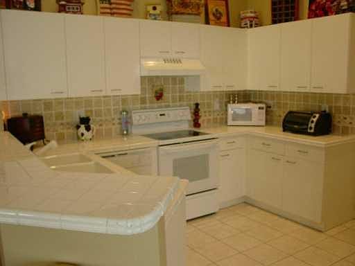 Upgraded washer dryer. Ceiling fans in all rooms. Covered screened patio with tile floors Kitchen has tumbled marble backsplash and white tile countertops with glass top stove. Professional landscaping, very private backyard with palm trees galore all ove r the property. Also privacy shrub fence. Outside of house was painted and sealed 3 months ago. Inside was painted 7 months ago soft neutral colors.