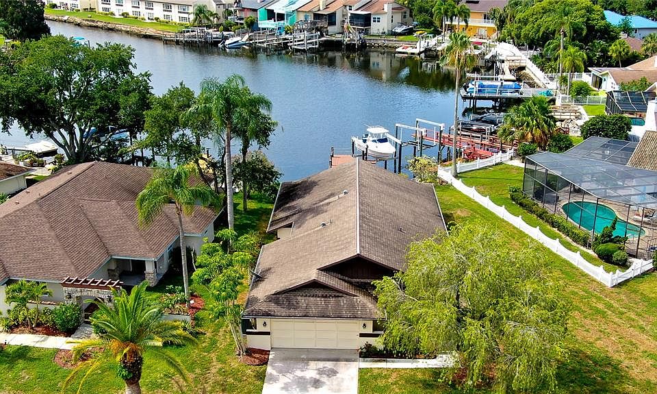 Channel your boat directly to the open Gulf of Mexico in this FULLY REMODELED waterfront 3/2/2. NEW dock~NEW Seamount $10,000 pound boat lift~NEW kitchen~NEW bathrooms~Real Hardwood Flooring! Easy electric up/down hurricane shutters. Open concept floorpan provides an inviting home with full waterfront views provided by the floor to ceiling sliders that surround that back Florida room living area. Available fully furnished for additional $. Kitchen is a chef's dream with new matching stainless steel Samsung appliance package, granite countertops, breakfast bar, full closet pantry all overlooking the water and living areas. Split floor plan. Master has walk in closet and master en suite has double sinks with a walk in shower. Huge 1/3 of an acre corner lot! Plenty of room for a pool! Inside utility is oversized. Gulf Harbors private beach access available for $156/year. Gulf Harbors Woodlands is a wonderful community where friendly neighbors welcome you and offers private tennis courts, a large heated pool, a recently renovated clubhouse and pool-side bathrooms with private showers, a private boat ramp and dock, and optional membership to Gulf Harbors beautiful sandy, private beach with grills, restrooms and pavilions overlooking Anclote Key on the Gulf of Mexico! $156/year. Boat and Grill are not included.