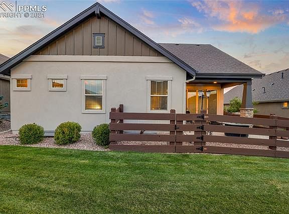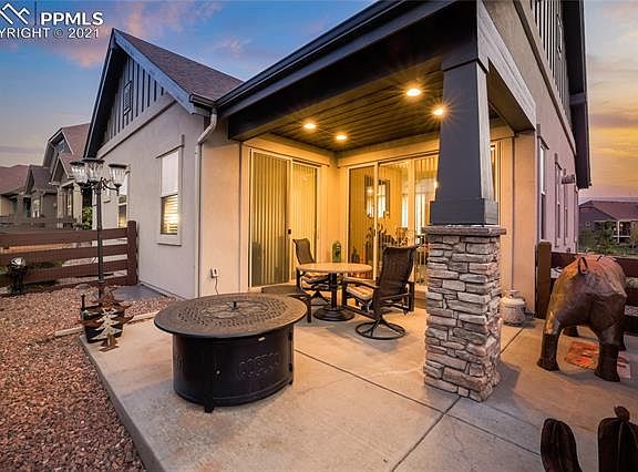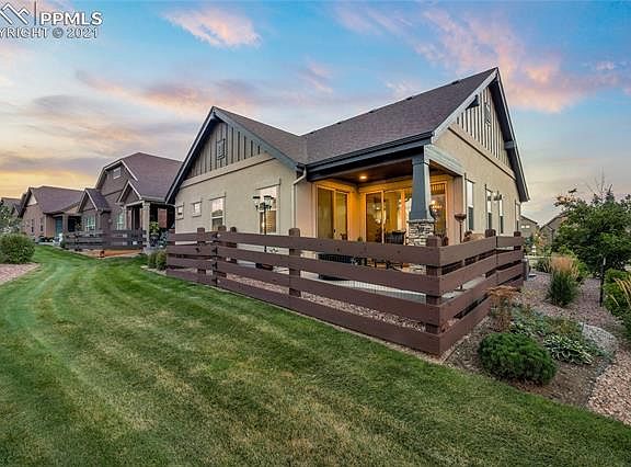 Picture perfect and perfectly sized in Cordera - everything you want, nothing you don't. Inside and out, this home is ready to settle in and enjoy the best of Colorado Springs living without the work, maintenance and expense of having more than you need. Here the HOA takes care of all exterior maintenance including lawn care, snow removal and trash service, so you can just enjoy your beautiful home. Some of our favorite features start with the covered front porch. Your guests will be welcomed inside to the main-floor living room, with its' double-sided fireplace. The living room is open to the kitchen, which has with warm wood-toned cabinets, stainless appliances, slab granite countertops and two double-width pantries for plenty of storage. The dining area has sliding glass doors to let in plenty of natural light, and encourage inside-outside living and dining on the covered patio with fenced rear entertaining space. The main-floor master is bright and spacious, with adjacent walk-in closet and spa bath with double vanities. Also on the main floor is a spacious office, plus an oversized laundry with a workstation, sink and plenty of space to get the household chores done. Downstairs, the basement level includes two more bedrooms, a full bath and a spacious open living area with built-in entertainment center and a wet bar with mini-fridge. Outside the property is professionally landscaped with low-maintenance trees and plants that will continue to be professionally maintained by the home-owners' association. Cordera community amenities include a community center and fitness center, plus a prime location near D-20 schools, shopping and major traffic corridors. 2021-12-02