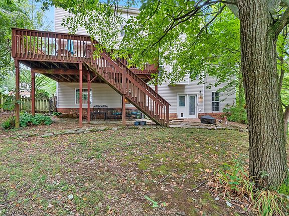 Nestled in a peaceful cul-de-sac, this two-story residence boasts 5 bedrooms, 3.5 baths, a finished walk-out basement w/ bonus room, two primary ensuites & plenty of room to grow. The main floor features a newly updated kitchen with beautiful white cabinets, timeless backsplash, stainless appliances, new lighting fixtures & quartz countertops. Enjoy an airy 2 story living room w/ gas fireplace, separate dining room w/ crown molding, & first floor primary ensuite with soaker tub, dual vanity w/ new faucets & walk-in closet. Upstairs are 3 bedrooms, one w/ finished storage area & full bath. The basement offers another living space w/ wet bar, additional ensuite w/ walk-in closet & full bath, & additional room that can be used as office space, workout room, or play area. You'll love the secluded backyard with large deck, mature trees, & perfect space for entertaining. Other updates include a new water heater, new rear French doors, & electrostatic air filter. Located in popular Pinnacle subdivision, you are within walking distance of Veteran's Park, community pool/clubhouse, & minutes away from shopping & popular restaurants. Don't miss your chance to make this beautiful home yours!