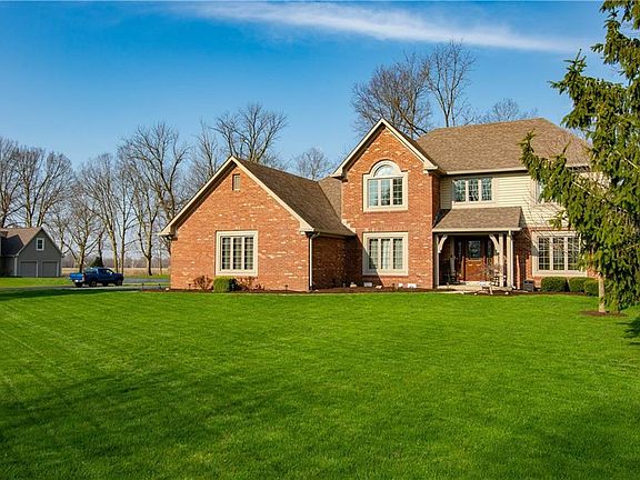 Beautiful 2-story Brick/cedar home in New Palestine School district. Home has been very well maintained. Updates include- New Flooring, HVAC, Well Pump, Water Heater, Gas Range, Microwave, Windows, Mini Barn and so much more!!! Home sits on a corner/cul-de-sac great lot!