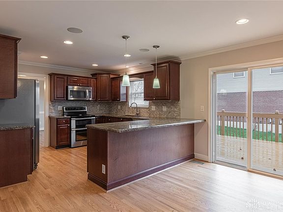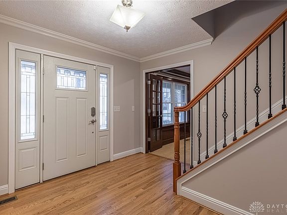 Fantastic Mason Fields 5 bedroom home offering a large front porch and back patio/ deck with a partial view of the lake. Great open floor plan in Mason schools, 2022 refinished hardwood & whole inside freshly painted, Roof 2013. Other features include a stainless and granite kitchen, 2nd fl laundry with washer/dryer and second floor flex room that could be a great family room or play area. The finished basement offers a dry bar, media room with screen, bedroom, and full bath. This is a must see home!