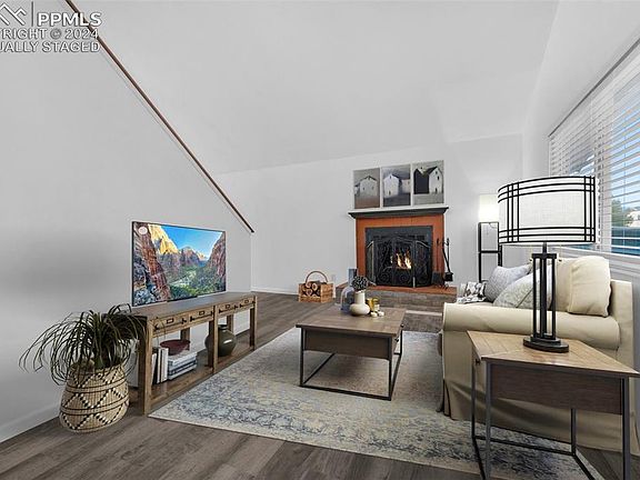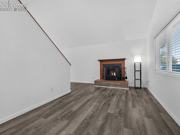 WELCOME TO THIS BEAUTIFUL FULLY REMODELED HOME, NEW EXTERIOR & INTERIOR PAINT, NEW EXTERIOR WINDOW TRIM, NEW GARAGE DOOR & GARAGE DOOR OPENER WITH WI FI CAPABILITY, AUTOMATIC SPRINKLER SYSTEM IN THE FRONT YARD, CENTRAL A/C, NEW HIGH QUALITY LVP FLOORING THROUGHOUT MAIN LEVEL, 6 PANEL DOORS, WOOD BURNING FIREPLACE IN LIVING ROOM. VAULTED CEILINGS IN KITCHEN & DINING AREA, WITH NEW SOFT CLOSE KITCHEN CABINETS, AND DRAWERS, WITH HARDWARE, STAINLESS STEEL APPLIANCES, CORIAN COUNTERTOPS, & NEW GARBAGE DISPOSAL. STAIRWAY WITH NEW CARPET EXTENDING UPSTAIRS TO 3 BEDROOMS. LARGE MASTER BEDROOM, WITH CEILING FAN & NEWLY REMODELED 1/2 BATH. 2 SECONDARY BEDROOMS & REMODELED FULL BATH, WITH NEW BATHTUB, AND ALL NEW FIXTURES THROUGHOUT THE HOME. WALK OUT THE NEW SLIDING GLASS DOOR FROM THE KITCHEN, TO THE HUGE BACKYARD, AWAITING YOUR CREATIVITY WITH LANDSCAPING, AND ENJOY THE VIEWS OF PIKES PEAK. THERE IS ALSO A BRAND NEW WATER HEATER & CLOTHES DRYER. COME AND TAKE A LOOK!
