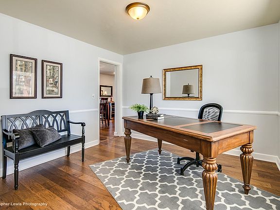Wonderfully cared for 2-story home in Ridgeview Hills lives large w spacious rooms. Welcoming south facing front porch. Updated kitchen has newly painted cabinets, Carrara marble counter tops, a pantry & new stainless steel appliances. It opens to a casual dining area and then to a great room, anchored by a wood burning fire place flanked by built-in cabinets & solid surface counter tops. French doors take you to the private back patio and yard. The expansive dining room has a long buffet cabinet (w solid surface counter top) and will accommodate any size dining table to host all your friends and family. The main floor 1/2 bath is tastefully updated. Upstairs you'll find 4 bedrooms and a full bath. The Master Suite has a 3/4 bath and a walk-in closet. The remaining 3 bedrooms all have generous closets and are themselves big rooms. Engineered Hickory Wood floors throughout the home. New stair carpet. New paint. Light filled home. Basement has a family room, laundry room & flex space.