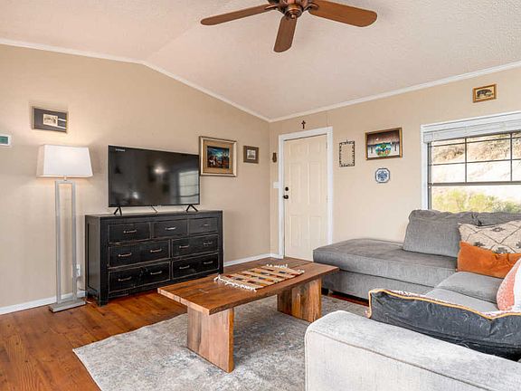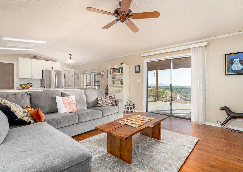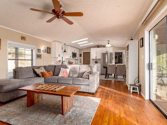 You'll love the gorgeous interior of this 1120 sq ft, 3 bed, 3 bath manufactured home with brand new kitchen, stainless appliances, Corian countertops, decorative tile backsplash, soft close Thomasville cabinets with pullouts. Brand new A/C and Rheem furnace. Washer, dryer and refrigerator convey! There is a new workshop outbuilding on the 1.35 acre property, room for horses and is totally private.