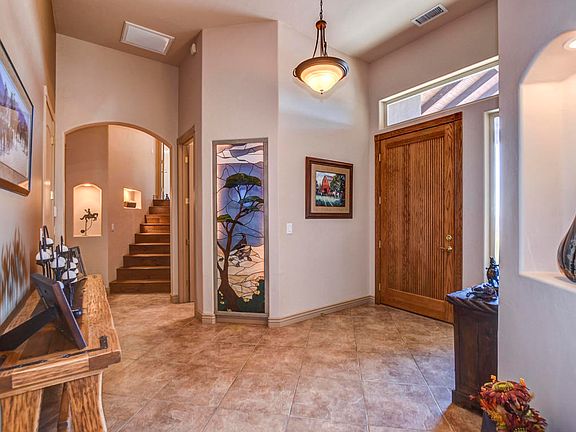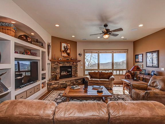 Stunning home with fantastic views! Features 180 degree views! 3 bedrooms along with 1 full bath, 1 3/4 bath and 2 1/2 baths. It features wood floors and beautiful tile floors. The kitchen features a wonderful work island along with a walk in pantry, double ovens, gas cooktop, and a double drawer dishwasher. There a an oversized great room with a stacked stone fireplace. The built in entertainment wall blends perfectly in the great room concept. There is also a large family/game room for all your family gatherings. The workshop is heated space for the crafter and offers a 1/2 bath. The back yard features a fenced space with synthetic grass along with a great covered patio. Don't miss your chance to see this home with a western flair! SHOWS BEAUTIFULLY!