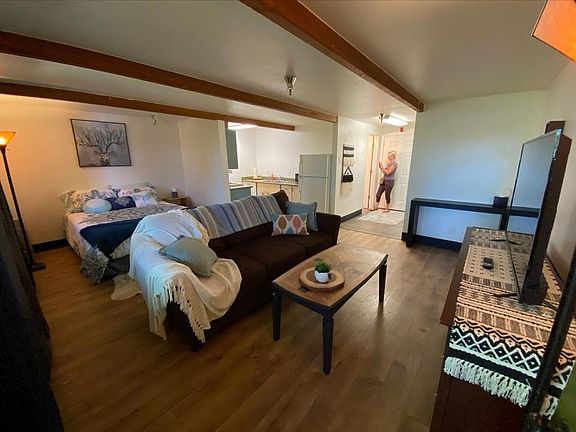 Stylishly furnished studio apartment with a large patio to sip your morning coffee. All utilities and WiFi are paid. Fully stocked kitchen so you may cook in or bring home some take out. Conveniently located near dinning and easy access to the highway for quick commute. Fully furnished studio, all utilities paid. $1000 deposit plus first months rent. Rent will be paid electronically each month by specified application. Month to month lease with a 4 month maximum at this time. No smoking or pets please! Free parking in a large parking lot. Coin washer and drier available in a common area.