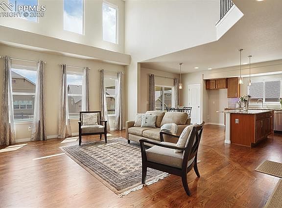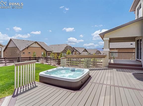 WHY WAIT TO BUILD? BETTER THAN NEW WITH HIGH-END CUSTOM FINISHES & UPGRADES GALORE! Popular Stucco 2-Story home w/4 BEDS UP on a cul-de-sac in desirable Cordera! Over 4,200 finished sq ft 5 Beds + main level study, 3.5 baths, and true 3 Car Garage. Enjoy the beautiful Colorado outdoors and starry skies on your expansive custom & covered Trex deck w/built-in hot tub! Enter the home and fall in love with the true wood flooring that flows throughout the main level. At the front of the home you will find a formal living and dining room space to gather around & break bread with family & friends alike. As you enter the 2-story great room, you will be in awe of the wall of floor to ceiling windows that provide so much natural light! This spacious room has a breathtaking center fireplace with a stacked stone surround and custom built-ins to enjoy! The UPGRADED gourmet kitchen is simply spectacular w/a large center island, granite countertops, custom backsplash, double oven, under cabinet lighting & a gas cooktop & hood! A study nestled behind the family room offers an ideal space for an in-house office. A fun barn door leads to the laundry area with a sink & a drop-zone to keep you organized. The upper level master suite is fit for a king and queen - offering wood floors, stunning MOUNTAIN VIEWS & a beautiful 5-piece en-suite w/a walk-in closet and a high-end organizational system. 3 additional upper bedrooms are on the opposite side of the master providing privacy. The basement has a huge rec room w/surround sound, 5th bed & full bath (ideal for guest/teenager suite). The ONE-OF-A-KIND wet bar is sure to be a conversation piece-truly a MUST-SEE. Whole home CAT-6 wired! In the heart of Briargate - Cordera offers something for all ages & D-20 too! See supp. for list of much more!