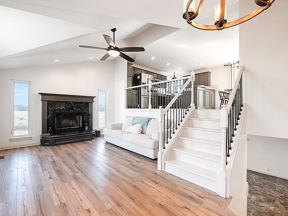LAND!! 4 bedroom, 3 bath Homestead on 7.4 Acres with a Shop that includes New lights, outlets with 50 amp 240v for Welder or RV hookups, RV Carport and a Stocked Pond! Must See this Beautiful Property on a Corner Lot w/ Circle Driveway :) LOTS of UPGRADES including New HVAC, Pressure Tank, Newer Water heater, Flooring, Paint inside and Outside, New Trim throughout, fixtures, a Manabloc Plumbing system, Quartz/Granite Countertops in Kitchen and Baths, High End LVP Flooring in Kitchen, Dining, Living Room and Hall! New Ceiling Fans, Wood Burning Fireplace in Living Room AND Home is wired for whole house generator! Must See!!