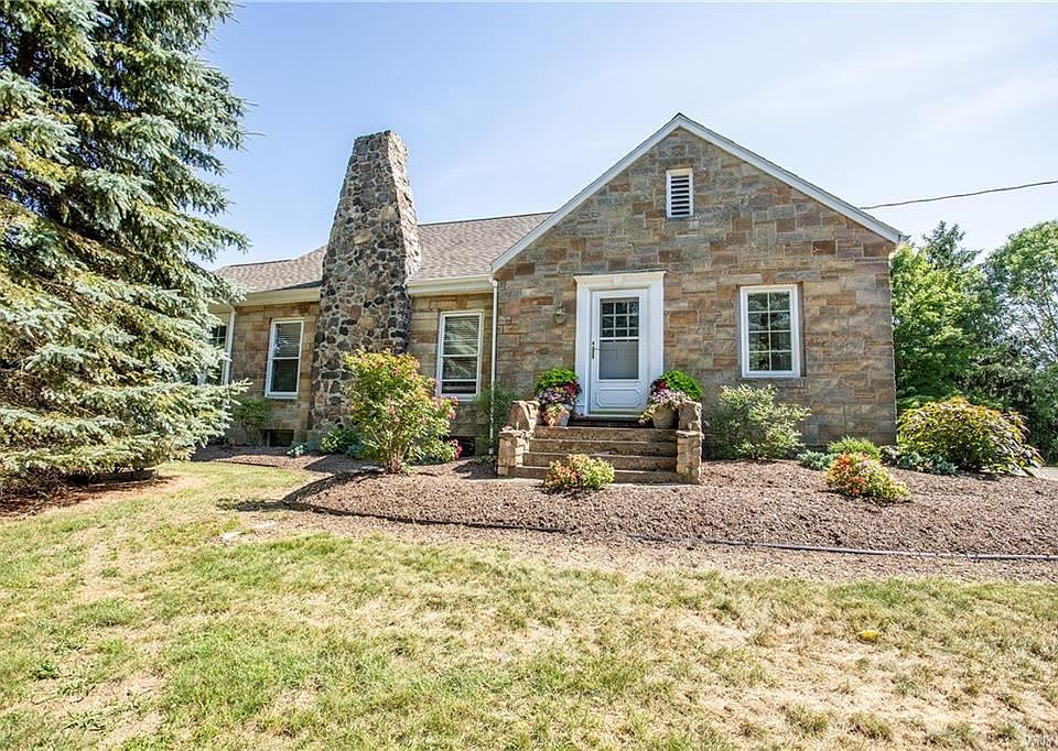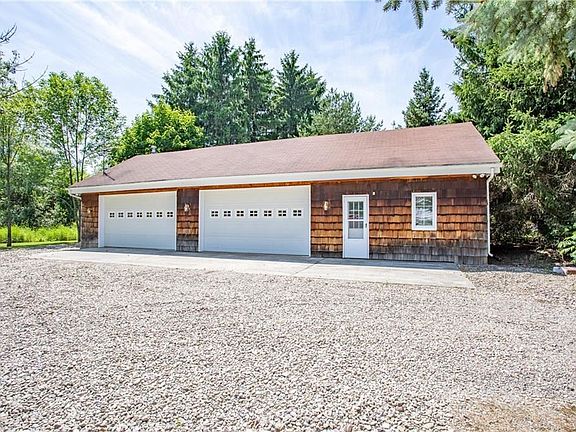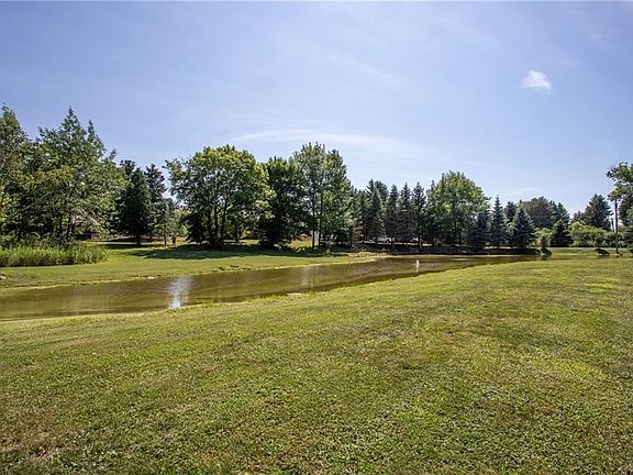 Privacy! This 4-bedroom home is situated on a 5-acre private lot. Set back from road overlooking the large pond surrounded by nature. Great outdoor space includes a large gazebo, huge paver patio, shed/party room with snowmobile door access, 4 car heated garage has water and floor drain has an office and storage loft. Large enclosed entrance room, updated eat in kitchen opens to formal dining room, main living room with stone woodburning fireplace, heated sunroom overlooks the nature and wild life, 1st floor bedroom, laundry, and full bath. Upstairs has 3 large bedroom and a full bath. Full basement, updated boiler system, bilco doors lead to yard.