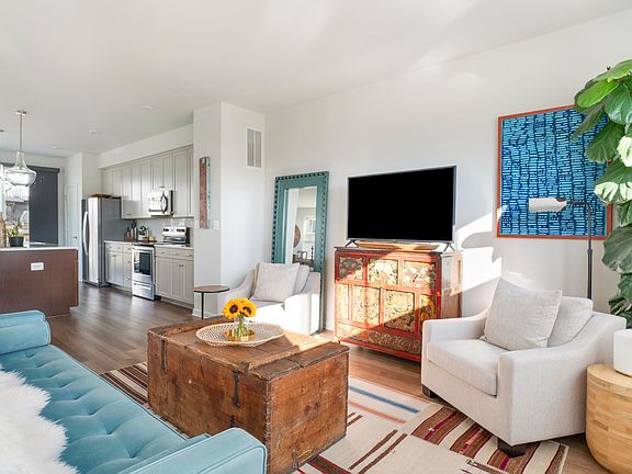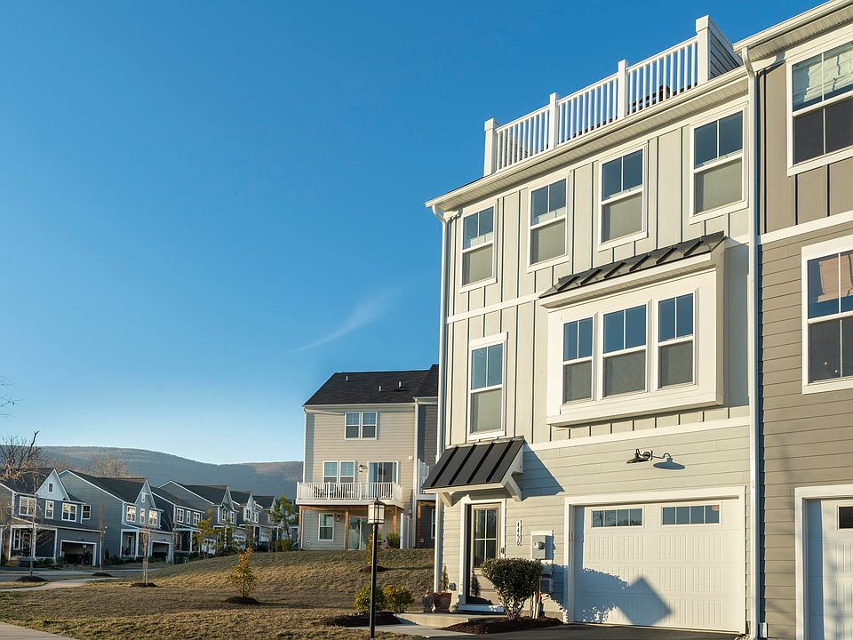 Light-filled, end-unit townhome with roof terrace in Pleasant Green! Located at what will be the front of the neighborhood when entered from the new road off of Jarman’s Gap, this like-new home has been meticulously maintained by its only owner. Pleasing neutral tones create a soothing interior in the heart of Crozet. First floor flexible den space with half bath opens to concrete patio. On the second level, the gorgeous kitchen with quartz countertops, pale gray cabinetry, warm-wood island, stainless steel appliances, and brass touches is adjacent to a large living area with window bump-out and a sizable dining area. Upstairs find the primary suite with walk-in closet, double sink vanity, and walk-in shower. Two additional bedrooms, both carpeted, share a spacious hall bathroom with double sink vanity and tub/shower. On the 4th floor, a flexible home office space opens onto a large roof deck with spectacular mountain views. Watch the sunset over the mountains every evening! Luxury vinyl tile floors throughout all levels, including the primary suite. Custom window treatments throughout. Walk to Crozet Library, Mudhouse Coffee Shop, Crozet Pizza, Fardowners, Smoked BBQ, Crozet Creamery, and more!